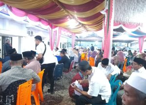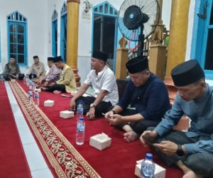 Keterangan fhoto : Kadis Pangan Zuhri bersama Para jemaah masjid Saat akan di mulai Acara Penyerahan Bantuan kepada Perwakilan Masjid yang akan mendapat bantuan dari Pemkab Labuhanbatu