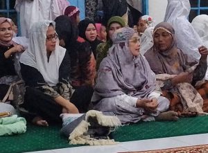 Keterangan fhoto : Plt Bupati Labuhanbatu Hj Ellya Rosa Siregar ,S.Pd.MM,bersama Para Jamaah Perempuan sedang bercengkrama seusai selesainya Sholat Tarawih.