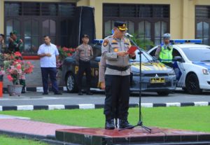 Keterangan fhoto : Waka Polres Labuhanbtu Kompol Hendri Matondang, S.H., M.H.saat membacakan amanat Kapolri
