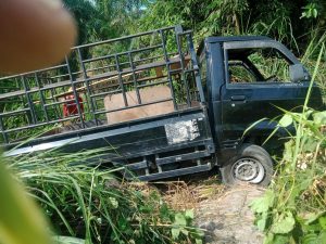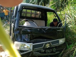 Keterangan fhoto : Mobil L 300 BK 9943 YG Masuk ke jurang setelah bertabrakan dengan Motor Vario BK 5648 TBH dikendarai korban meninggal Wiwik