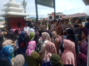 Keterangan fhoto : warga masyarakat asli kelurahan Pulo padang yang mendatang ke Mapolres Labuhanbatu untuk menyampaikan ucapan terima kasih dan memberikan apresiasi saat melakukan aksi Dame terkait pengamanan dan penangkapan warag masyarakat  Pulo Padang dan mahasiswa yang melakukan penghadangan jalan di jalan umum kelurahan pulo padang