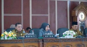 Keterangan fhoto : Ketua DPRD Labuhanbatu Hj Meika Riyanti Siregar ,SH berdampingi Wakil Ketua DPRD Labuhanbatu Abdul Karim Hasibuan,dan Sekdakab Labuhanbatu Ir Hasan Heri Rambe.