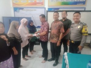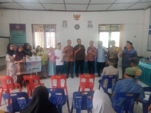 Keterangan fhoto : Kepala Desa Sidorukun Eko Syahputra berdampingan dengan Camat Pangkatan Datar Sirait bersama Perwakilan dari Dinas PMD Labuhanbatu Hadi Winarno Syahputra dan Keluarga penerima manfaat dari Desa Sidorukun saat Penyerahan BLT