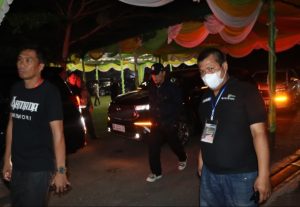 Keterangan fhoto : Muhammad Bobby Afif Nasution disambut oleh Bupati Labuhambatu Utara Hendriyanto sitorus .SE. saat mendatangi acara puncak hari jadi Kabupaten Labuhanbatu Utara