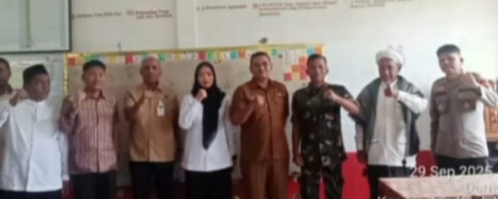 Kapolsek Kualuh Hulu AKP Nelson Silalahi,SH.MH hadiri launching Perdana Makan Bergizi Gratis (MBG) di Kecamatan Kualuh Selatan, Kabupaten Labuhan Batu Utara, Sumatera Utara yang digelar di Halaman SD Negeri 117511 Karang Sari, Desa Damuli Pekan,Senin (29/09/2025)